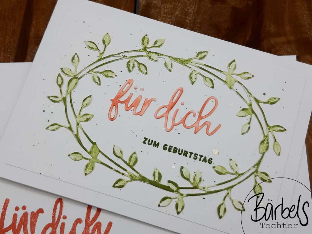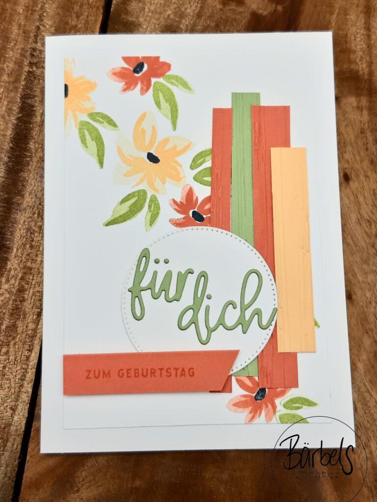 Bei dieser Karte hab ich dann auch die Blumen abgestempelt. Sie werden in zwei Schritten gestempelt und sehen daher richtig cool aus.